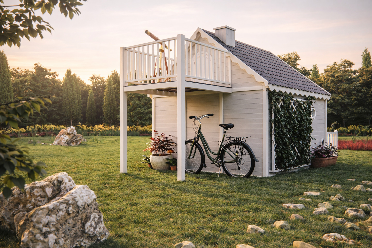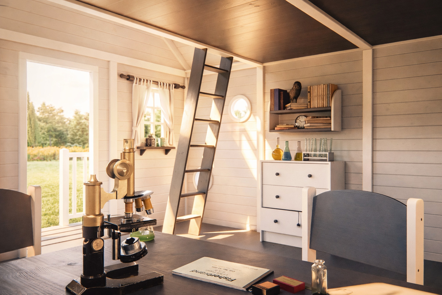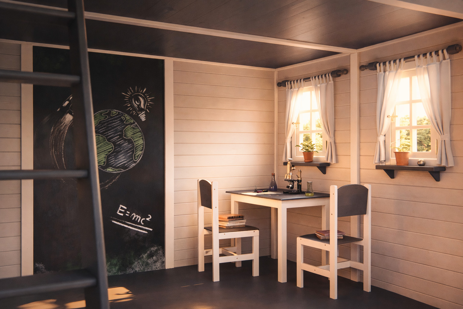 Kula ziemska, Kolumb, gwiazdy, wszechświat – wszystkie te słowa łączy jedno – drewniany domek z balkonem Naukowiec. Jeśli Twoje dziecko uwielbia badać, eksperymentować i szukać nowych rozwiązań, ten domek sprawdzi się idealnie. To miejsce, w którym tworzy się nowe teorie, miejsce, z którego można dojrzeć Wielki Wóz i Małą Niedźwiedzicę. W domku z drewna Naukowiec cały wszechświat jest na wyciągnięcie ręki.