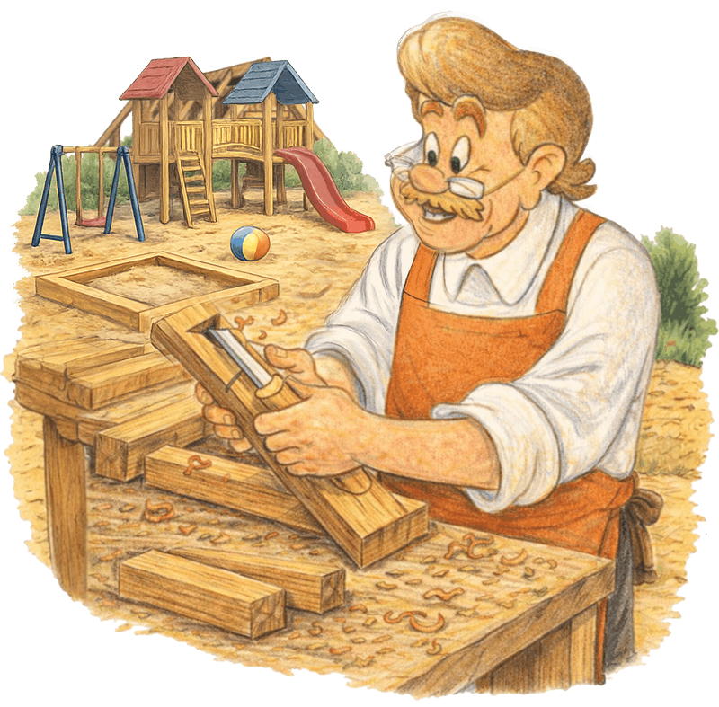 Używamy świerku skandynawskiego – drewna klejonego, które nie pęka i nie deformuje się pod wpływem warunków atmosferycznych. Każda konstrukcja jest impregnowana i pokryta dwiema warstwami ochronnych powłok. Dzięki temu nie wymaga konserwacji i służy dzieciom przez wiele lat.